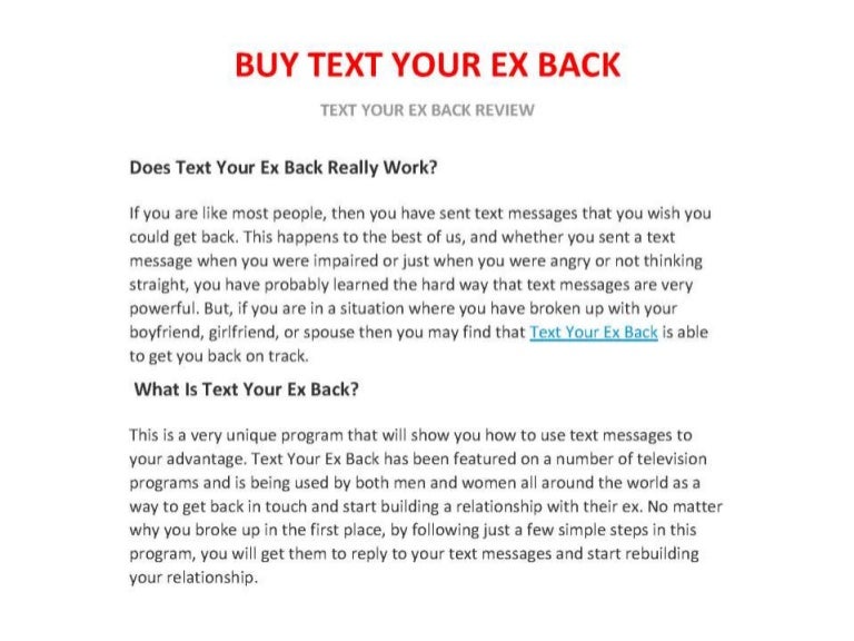 How texting fits into getting your ex boyfriend back. As a matter of fact, when you follow the correct steps, you can start to reignite that spark in your ex and bring him bounding back to you faster than a little lost puppy looking for his owner! If it was a nasty breakup, it's almost always best to wait a few weeks before you contact your ex you will have to judge this by your own relationship context. Using texts to get back together with your ex can lead you into pitfalls that can result in your being left for good. Nothing about your love life should be casual. But, if you think there is a reasonable chance you can get back with your ex, there are some. So, the right way to do it is to write text messages in a way that can allow your ex to respond if your ex wants to. Texts to help win back your ex. Want to know how to get your ex back fast by text message? Getting your ex back is hard. Remember, i was in your shoes before and i got my ex back after it. When you're trying to get your ex. July 21, 2014 / text your ex back , by relationship expert michael fiore, has been getting the people thrilled and generating a positive response from michael has years of experience in teaching people about the powerful potential of text messaging.